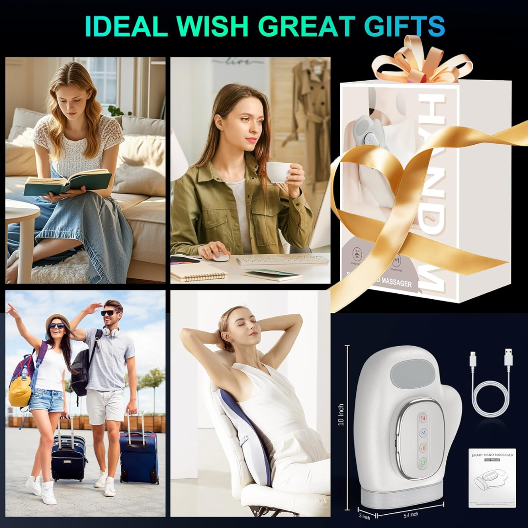 Great hand massager! The heat and compression feel very relaxing and really help with hand and wrist pain. It's easy to use, has different massage modes, and charges quickly. Perfect for relieving tension after work.